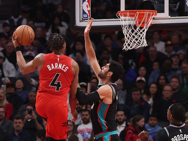 灰熊客場(chǎng)對(duì)陣猛龍,莫蘭特此戰(zhàn)被球隊(duì)禁賽(他對(duì)主教練出言不遜被禁賽1場(chǎng)),另外伊迪、皮蓬、克拉克也因傷打不了,灰熊戰(zhàn)力不足,不是猛龍對(duì)手,最終以13分之差敗下陣來。猛龍方面巴雷特19中10得到27分6板6助,鶯歌15中10得到26分7板4助,巴恩斯19中8得到19分12板8助5帽,灰熊方面杰克遜15中8得到20分9板3助。