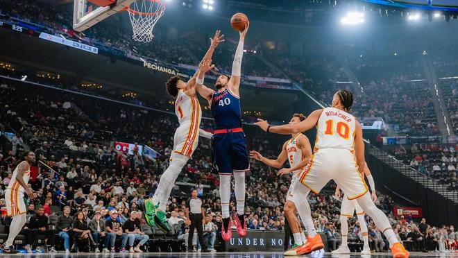 老鷹隊(duì),波爾津吉斯12中5得到了20分3板4助3帽、杰倫約翰遜16中7貢獻(xiàn)16分10板8助、里薩謝11中4得到11分5板3帽、奧孔武10中4得到10分6板3助、肯納德7分4板2助、丹尼爾斯9中3得到6分3板8助3斷、華萊士5分4板1助、蓋耶2分3板2助。