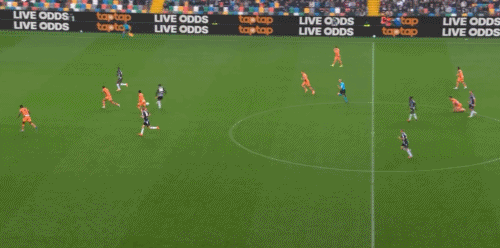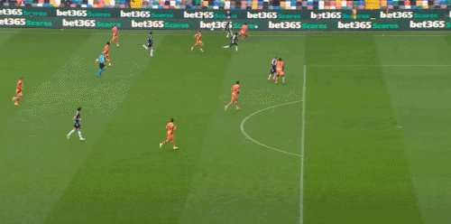 第40分鐘,扎尼奧洛禁區(qū)中路抽射破門,烏迪內(nèi)斯1-0亞特蘭大